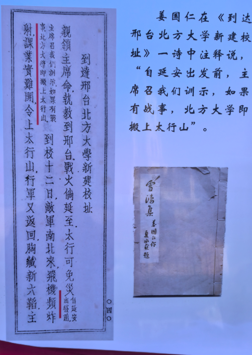 姜国仁诗透露毛泽东关于内战一旦爆发,北方大学上太行的预案:“自延安出发前,主席召我们训示,如果有战事,北方大学即搬上太行山。”